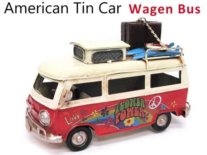 > ブリキカー サーフ ワーゲンバス フラワー (AZ2598レッド/17cm) ミニ ワゴン 花柄 サーフボード 車 西海岸風 インテリア アメリカン雑貨