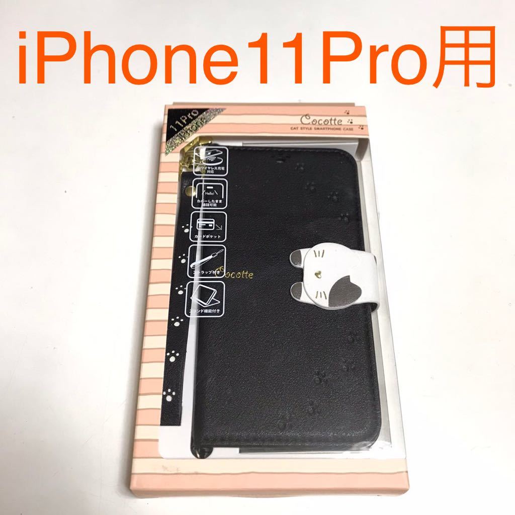 匿名送料込み iPhone11Pro用カバー 手帳型ケース ブラック 黒色 猫フラップ ネコ好きさん 可愛い お洒落 アイホン アイフォーン11プロ/NK9