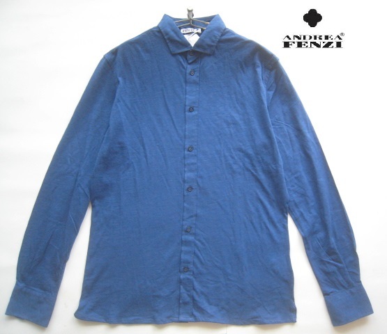 - 新品2.1万!!ANDREA FENZI アンドレア フェンツィ*イタリア製 コットンカットソーシャツ 50 実寸L 紺 ネイビー 阪急百貨店購入