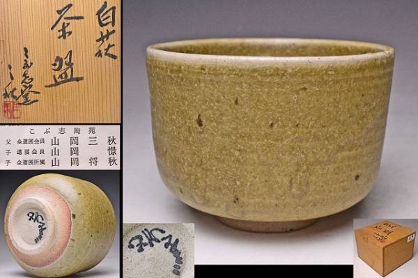 > 山岡三秋 ★ こぶ志焼 ★ 白萩 茶碗 ★ 共箱 栞 ★ 北海道 御国焼 ★ 茶道具 ★