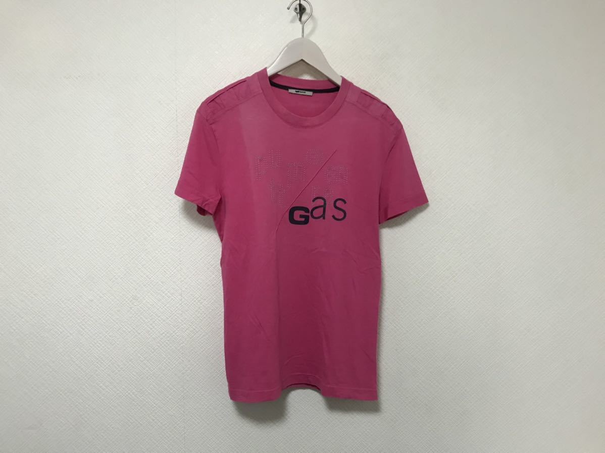 - 本物ガスGASコットンロゴプリント半袖TシャツメンズアメカジビジネススーツサーフストリートピンクM