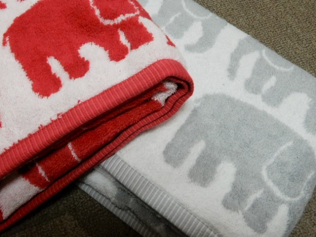 - ☆送料無料 Finlayson フィンレイソン バスタオル 2枚セット レッド&グレー エレファンティ 今治タオル