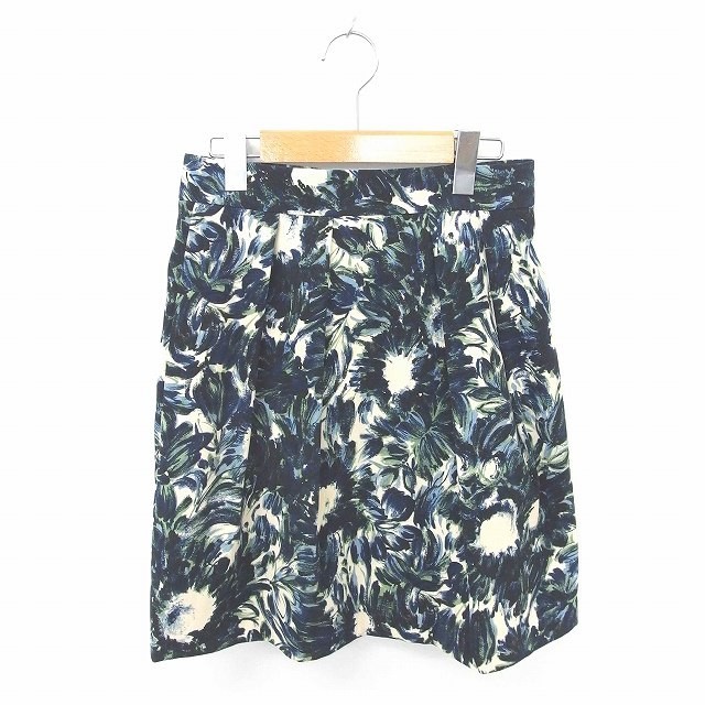 > スピック&スパン Spick&Span スカート フレア ひざ丈 花柄 バックファスナー 38 薄茶 紺 ライトベージュ ネイビー /TT30