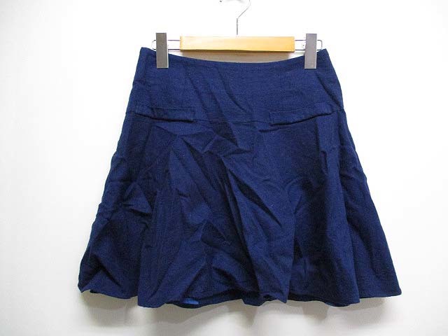 - エフデ ef-de 台形 フレア ウール スカート 9 ネイビー ひざ丈 裏地付き 日本製 レディース