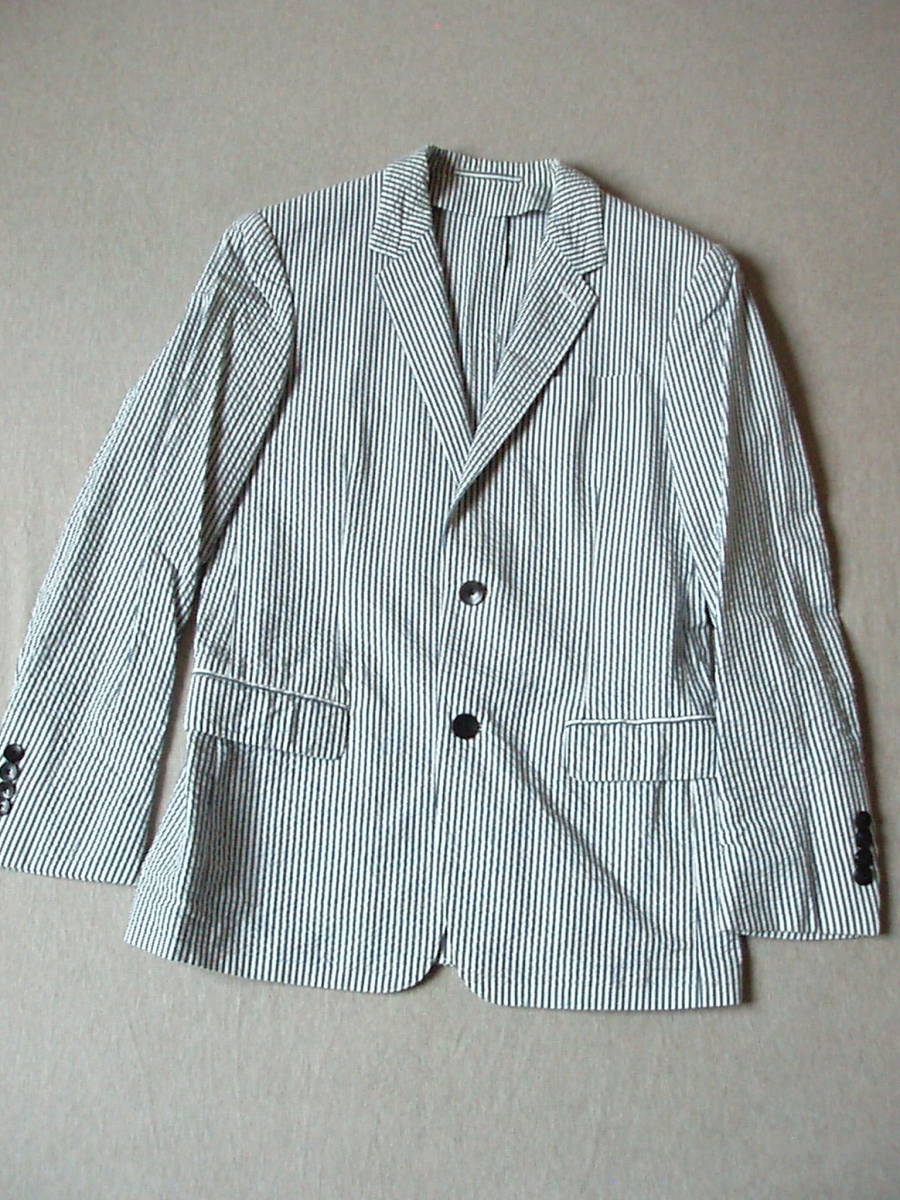 - 新品未使用 希少 Tomorrowland Pilgrim ジャケット 44 シアサッカー地 ストライプ ボーダー 正規品 ホワイト ブルーグレー