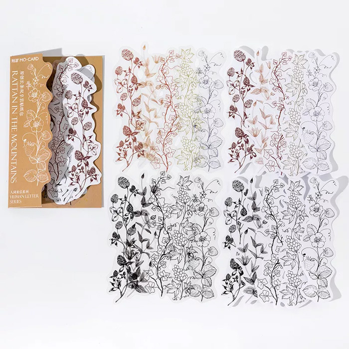 - 20枚 シール 花 蝶 月 おしゃれ アンティーク ビンテージ デコステッカー アンティーク調 コラージュ レトロ 1051-6