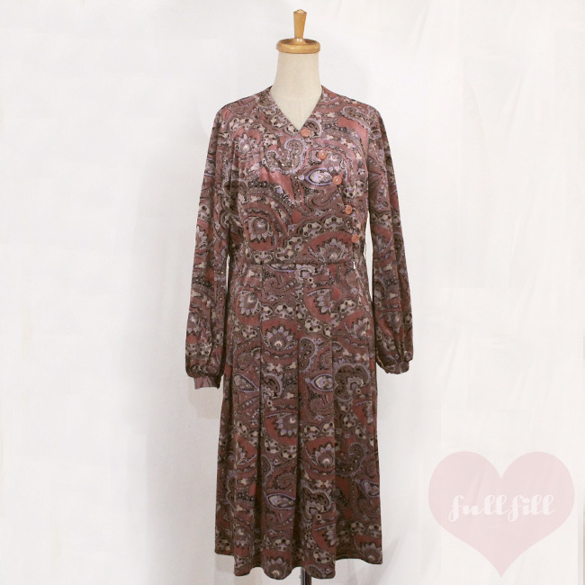 - ワンピース 古着 昭和 レトロ ベロア 長袖 ピンクパープル オリエンタル ビンテージ ヴィンテージ vintage フォーマル 個性的 カシュクール
