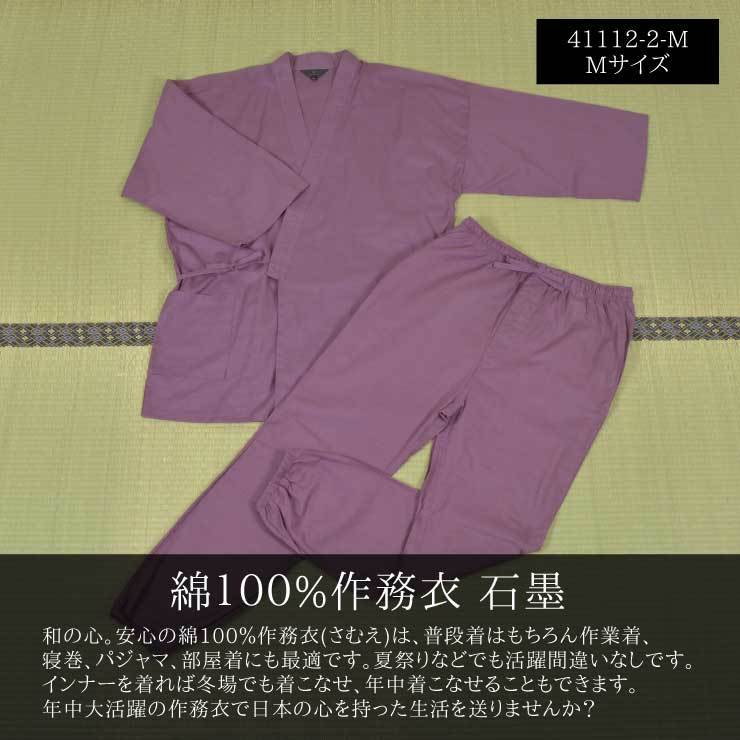 - 綿100% 薄地 作務衣 石墨 Mサイズ★41112-2-M★新品 さむえ 紳士 男性 おしゃれ 着方 パジャマ 普段着 和食 居酒屋 整体 陶芸 書道 和装 Z1