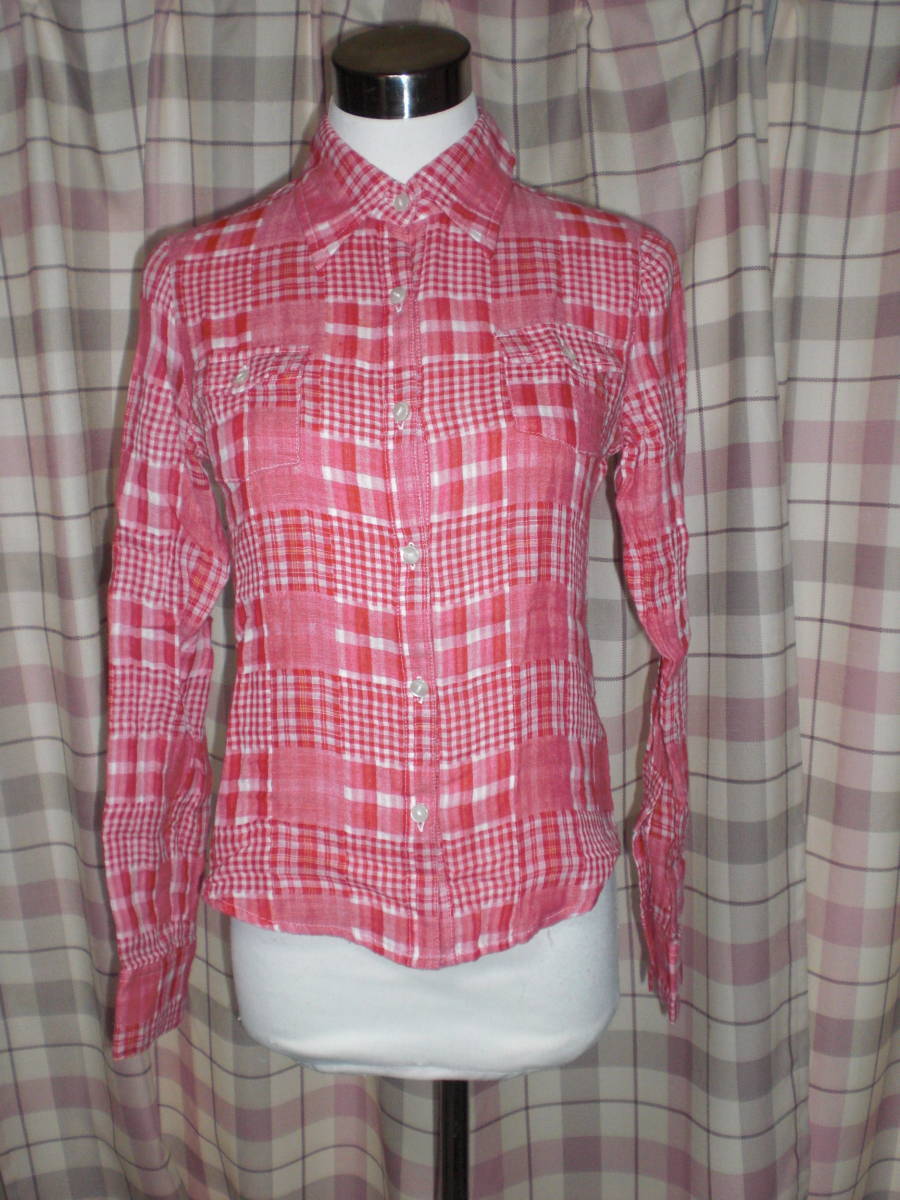 - 122) 【昭和レトロ】CO & LU 赤白のチェック柄デザインシャツ(USED、美品)