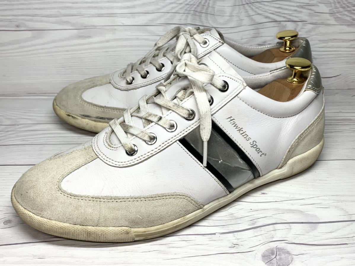 > 【即決】HAWKINS SPORTS 24.5cm メンズ ホーキンス スポーツ スニーカー くつ レザー ホワイト 白 HL00006 カジュアル アウトドア