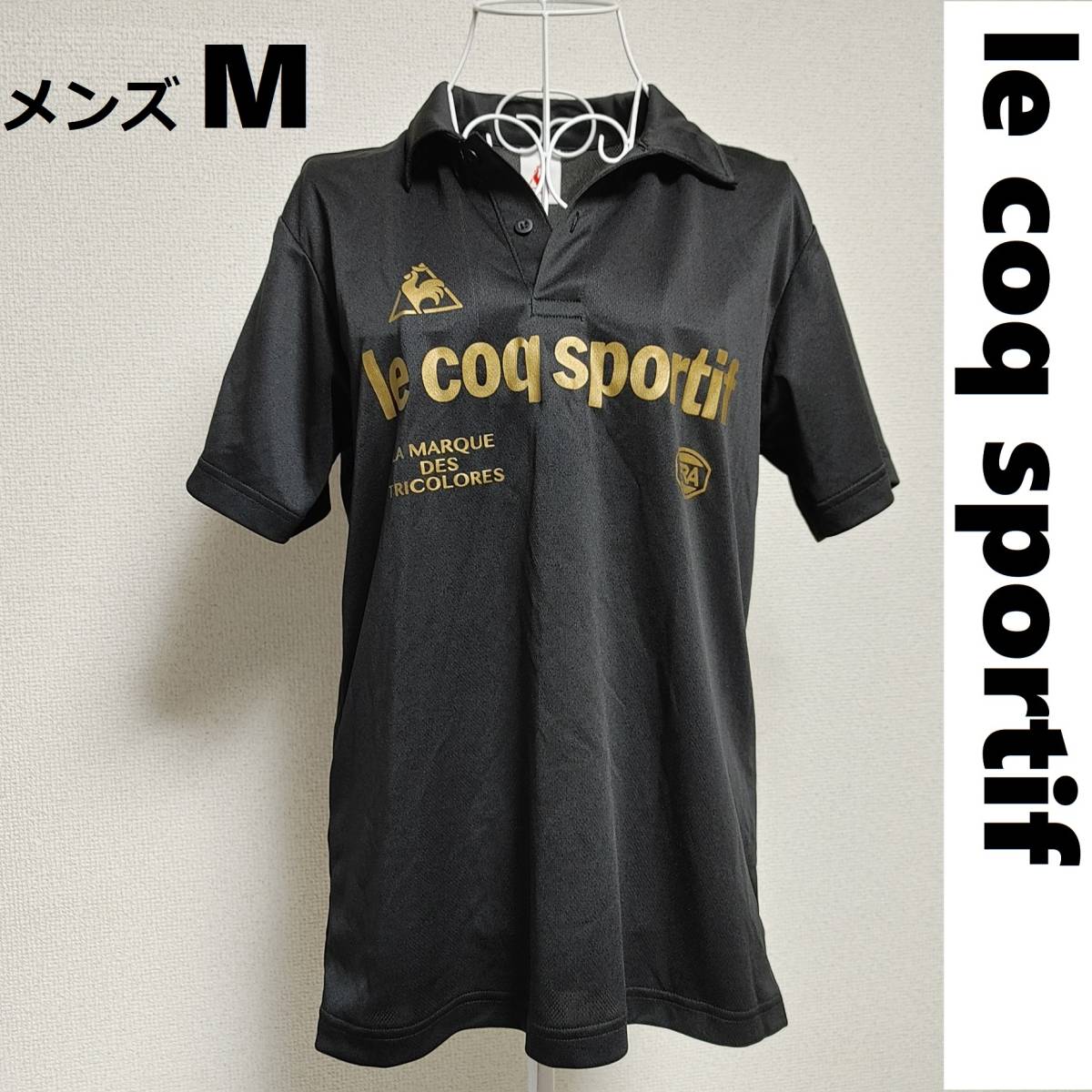 - le coq sportif◆メンズ M 黒★半袖 ポロシャツ デカロゴ プリント ボタン ゴルフウェア ルコック トップス ウェア 春夏 金 GOLF ゴルフ