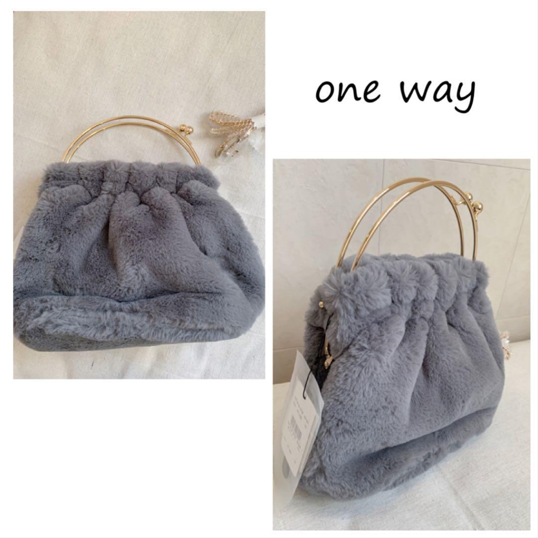 - ファーバッグ ショルダー 2way ライトグレー チェーン 冬