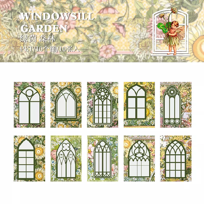 - 10枚 シール 窓 扉 透明 おしゃれ アンティーク ビンテージ デコステッカー アンティーク調 コラージュ レトロ 1059-3