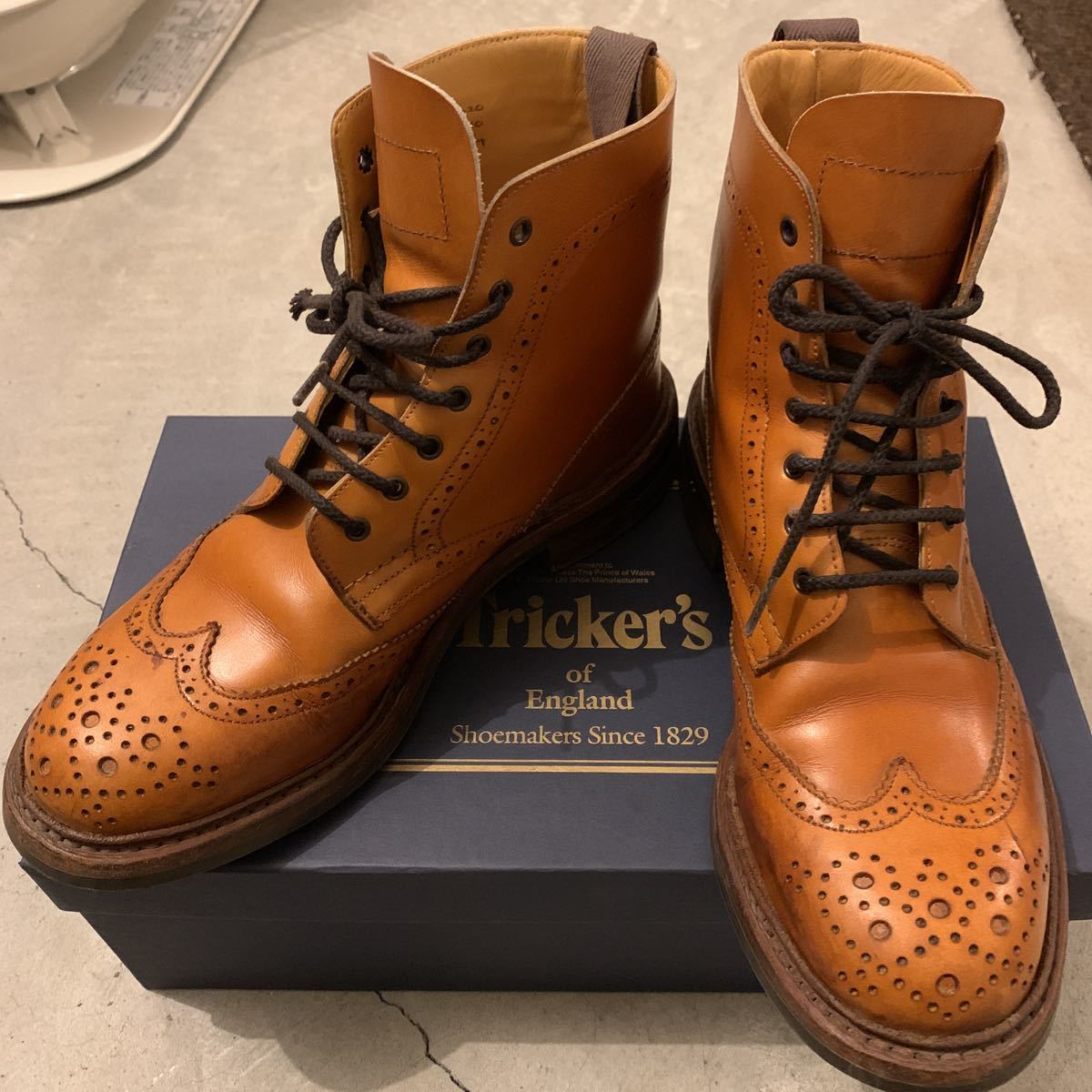 - Tricker's ☆トリッカーズ カントリーブーツ ウイングチップ モールトン ライトブラウン 英国製 箱付き