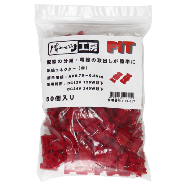 > パーツ工房 配線コネクター エレクトロタップ 赤 50個入り 配線の分岐・電源の取り出しに AV0.75sq~AV0.85sq PN-107 ht