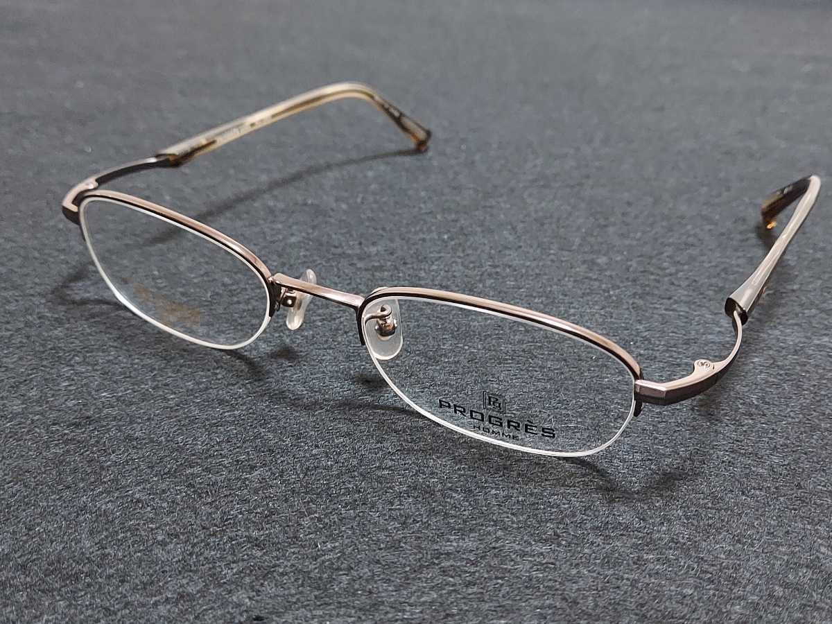> 新品 PROGRES HOMME プレグレオム 鯖江 サバエ 日本製 メガネ 眼鏡 高級感 上品 ハーフリム チタン ブラウン系