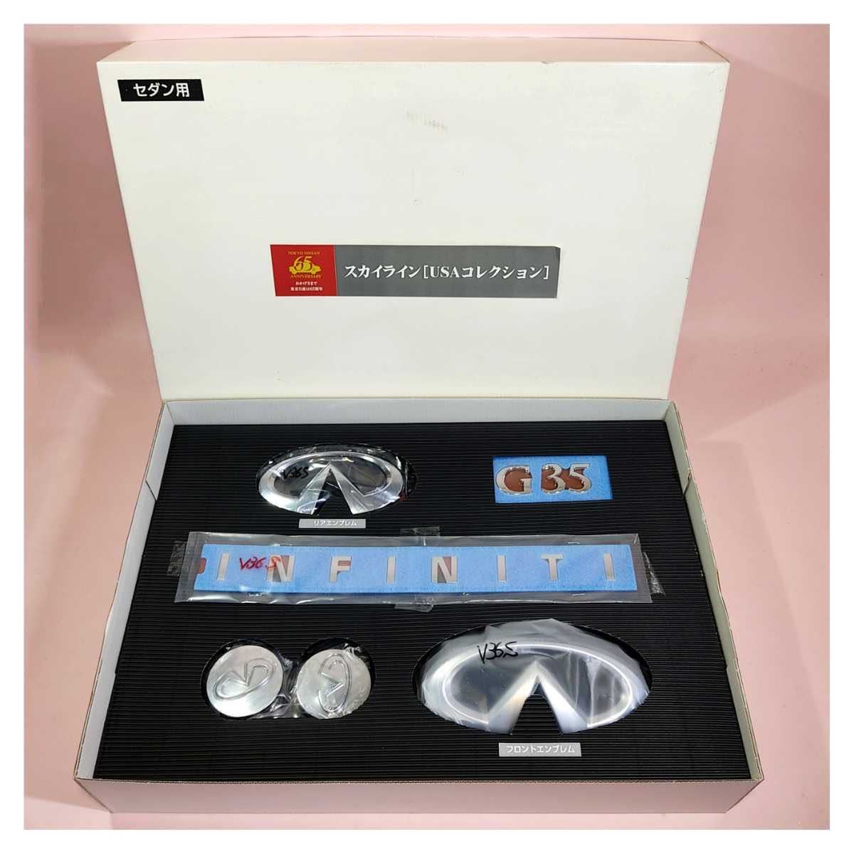 - 本体未開封 スカイライン USAコレクション セダン用 東京日産 65周年記念 特典 各エンブレム ホイールセンターキャップ セット品 箱あり