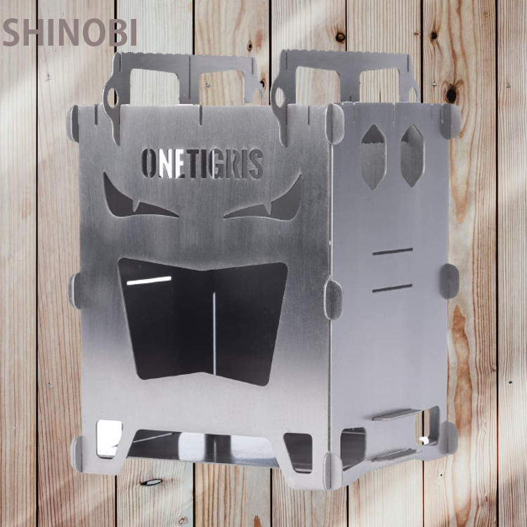 - 1mm厚チタン製 折りたたみ式 焚き火台 ウッドストーブ 組立簡単 収納バッグ付き デーモンフェイスデザイン 13D x 13W x 18H cm
