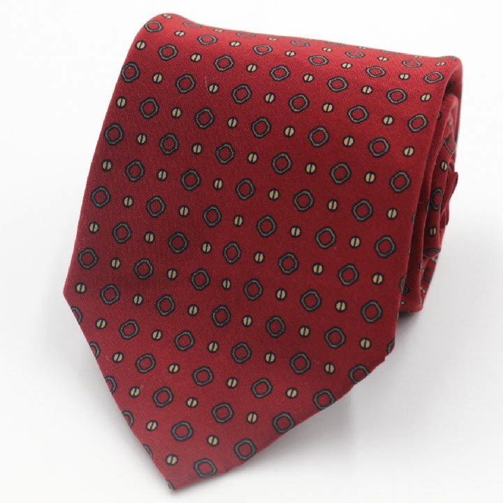 - ロンジン 小紋柄 総柄 シルク 日本製 ブランド ネクタイ メンズ レッド 良品 LONGINES
