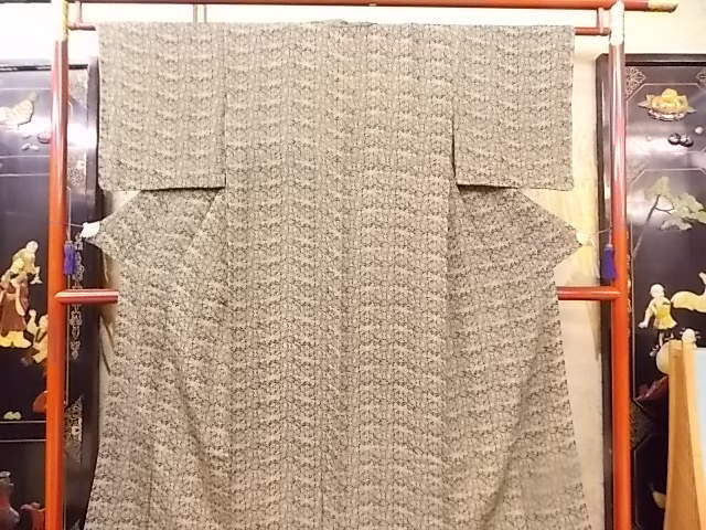 - きもの今昔4538 小紋のきもの 広衿袷手縫い仕立て 線書き図案に小花の小紋