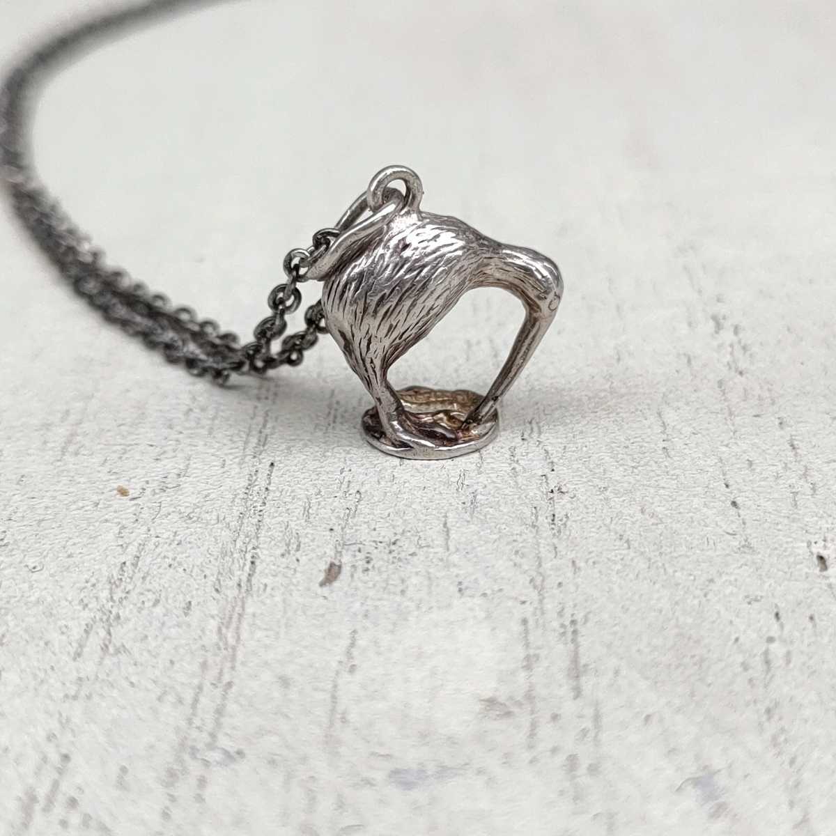 - 【純銀】美品/unknown/ヴィンテージ/ビンテージ/シルバー925/SV925/鷺/コウノトリ/フラミンゴ/鳥/ネックレス/QD16KS2/