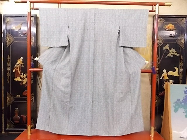 - きもの今昔4544 合繊のきもの 広衿袷手縫い仕立て 染め小紋ポリエステル