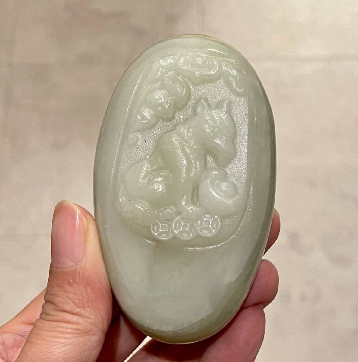 - アフガンニスタンジェイド 狐 天然石彫刻 Afghanistan Jade 動物 016