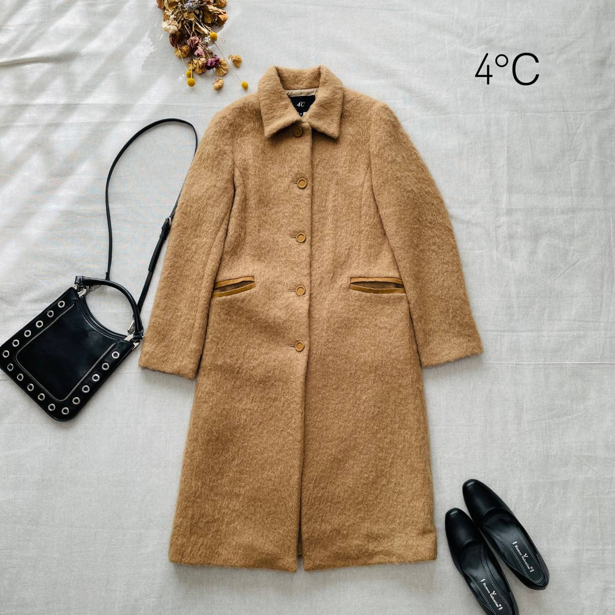 - 厳選☆レア 4℃ 大人上品♪ 美品 ヨンドシー キャメルモヘア ウールロングコート M