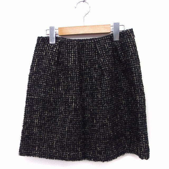 > スピック&スパン Spick&Span タック フレアスカート ミニ ツイード ウール混 36 ブラック 黒 /FT49 レディース