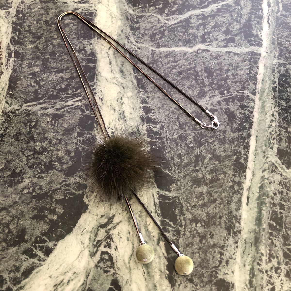 - 【新品】ミンクファーペンダント★ロングネックレス モスグリーン 深緑 プレゼント ギフト