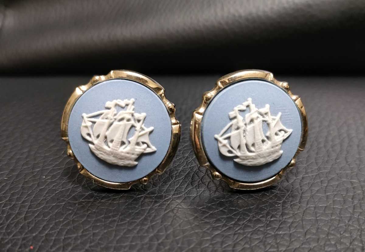 > 新品 未使用 ウェッジウッド カフスボタン 帆船 ブルー ゴールド WEDGWOOD メンズ フォーマル メンズアクセサリー イングランド