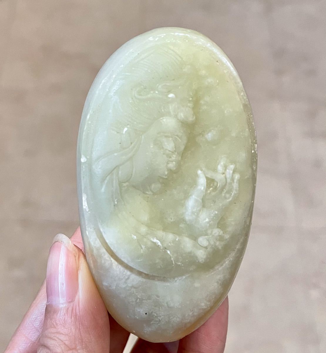 - アフガンニスタンジェイド 神様 菩薩天然石彫刻 Afghanistan Jade 038