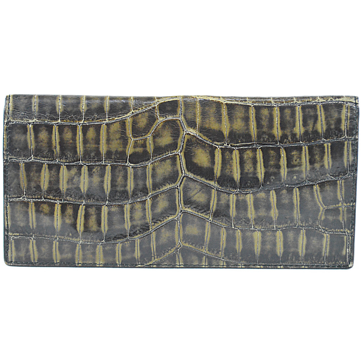 > ボッテガヴェネタ 希少 浸透斑染 豪華 クロコダイル メンズ 小銭入れ付き 長財布 アリゲーター BOTTEGA VENETA