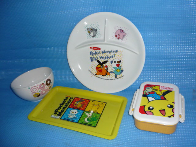 - b★未使用・非売品★第一パン 懸賞当選品 ポケモン 陶器製モーニングプレートとミスド ピカチュウボウル他4点