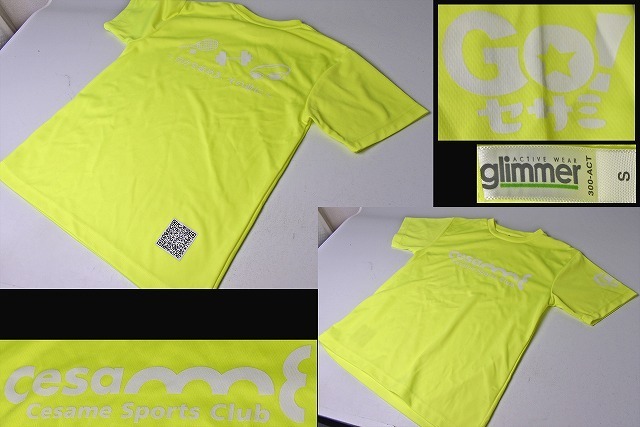 > スポーツクラブロゴ 半袖 Tシャツ ★ Sサイズ 蛍光イエロー ★ 速乾素材 ★ トレーニング ランニング用に ★