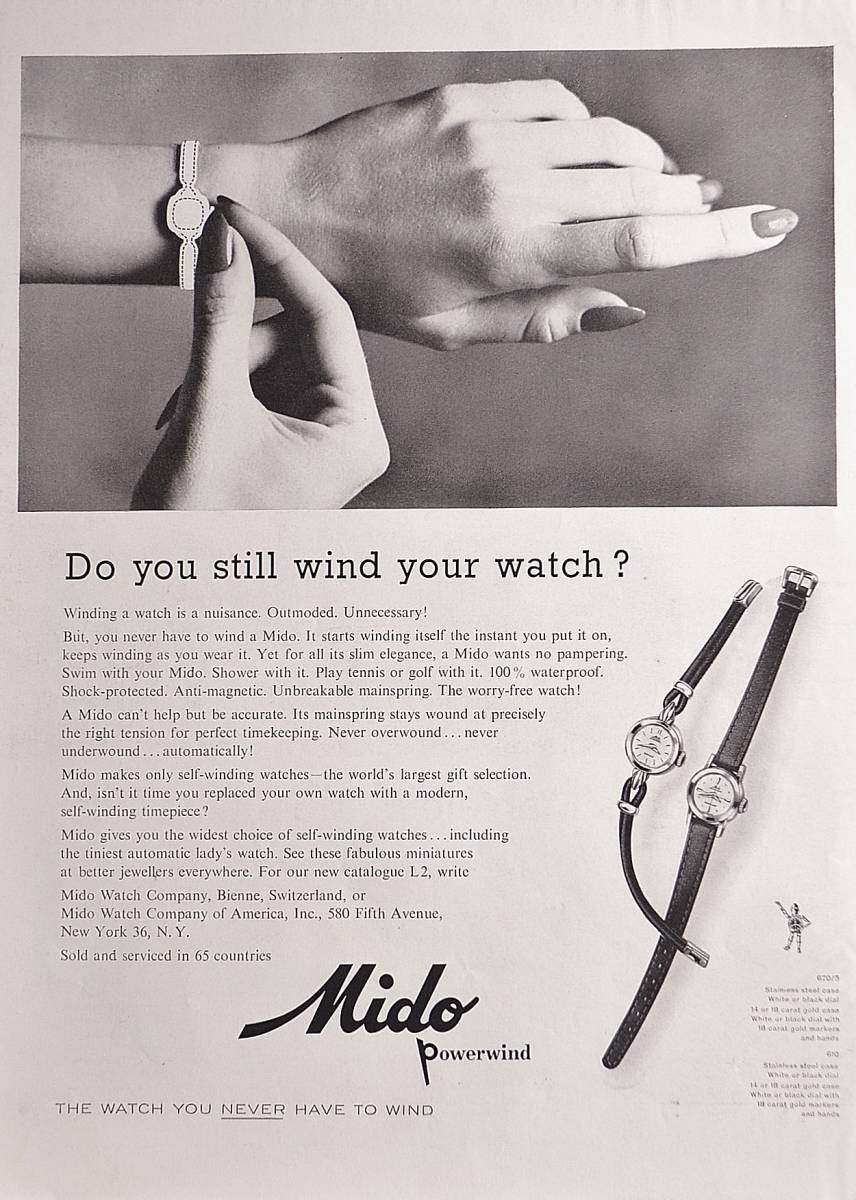 - 稀少・時計広告!1950年代ミドー時計広告/Mido powerwind Watch/レディース/O