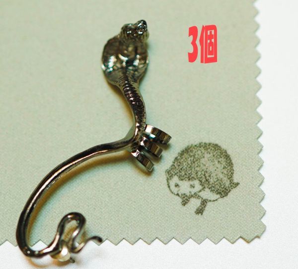 - ピアス 蛇 コブラ シルバー 黒銀 片耳ピアス ヘビ 【3個】イヤカフ カフス アクセサリー