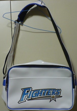 - 日本ハムファイターズロゴ入りエナメルバッグ 白×青