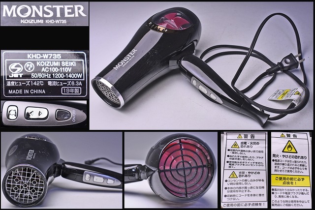 - ドライヤー ★ コイズミ ★ ヘアドライヤー ★ MONSTER KHD-W735 ★ 19年製 ★ KOIZUMI SEIKI AC100-110V ★ 中古品 ★ 傷あり ★ 使用感