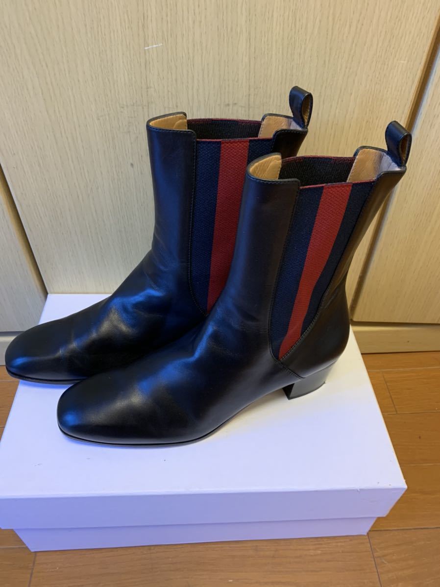- 正規 GUCCI グッチ サイドゴア チェルシー レザー ブーツ 黒 42