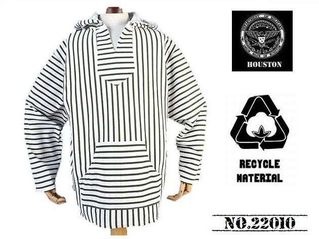 > 【送料無料 54%OFF】HOUSTON ヒューストン ECOPLUS ボーダーメキシカンフーディー バスクシャツ NO.22010 OFF×OLIVE_Lサイズ