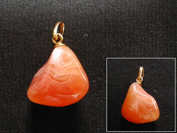 - ■美品:K18+オレンジ系石のペンダントトップ 石には縞模様 Dn034