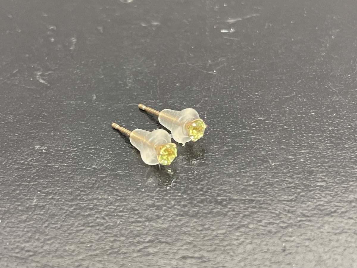 - K10スタッドピアス★グリーンガーネット★イエローゴールド★X2310