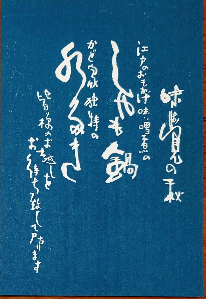 - f23020322〇彩色木版画 しゃも鍋 墨田区 はがき 昭和51年(1976年)〇和本古書古文書