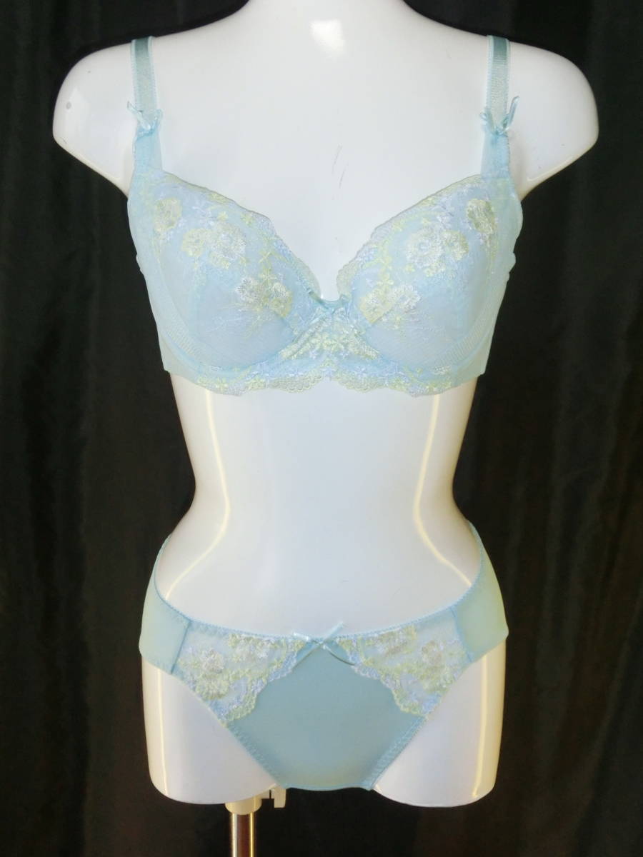 - ☆【F80 L】スカイブルー 透け感のあるリフトブラジャー・ショーツセット《16-4》