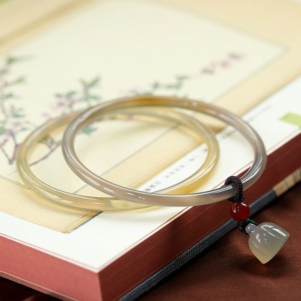 - [EasternStar] 天然 玉髄 瑪瑙 バングル 極細 レディーズ 腕輪 14K 金メッキ 灰色茶 蓮語ブレスレット ペア