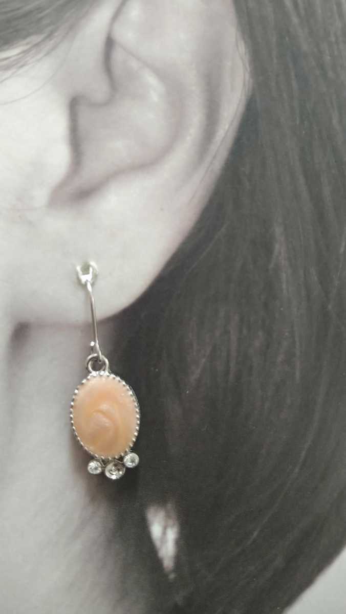 - □ラメ入りピンクベージュ×シルバーカラー×ラインストーン・揺れるピアス□