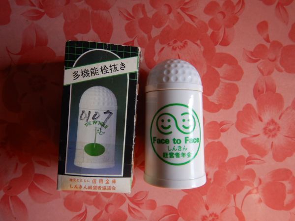 > 多機能栓抜き0107 ごるふぼーる プッシュ型 キャップ 缶切り 直径5.6h10.5cm 未使用 磁石 オープナー