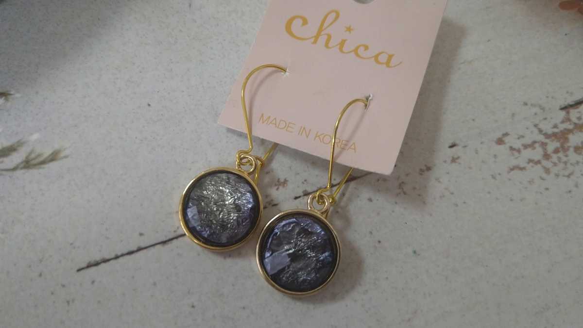 - □未使用□ネイビー×ゴールドカラー・丸い揺れるピアス□