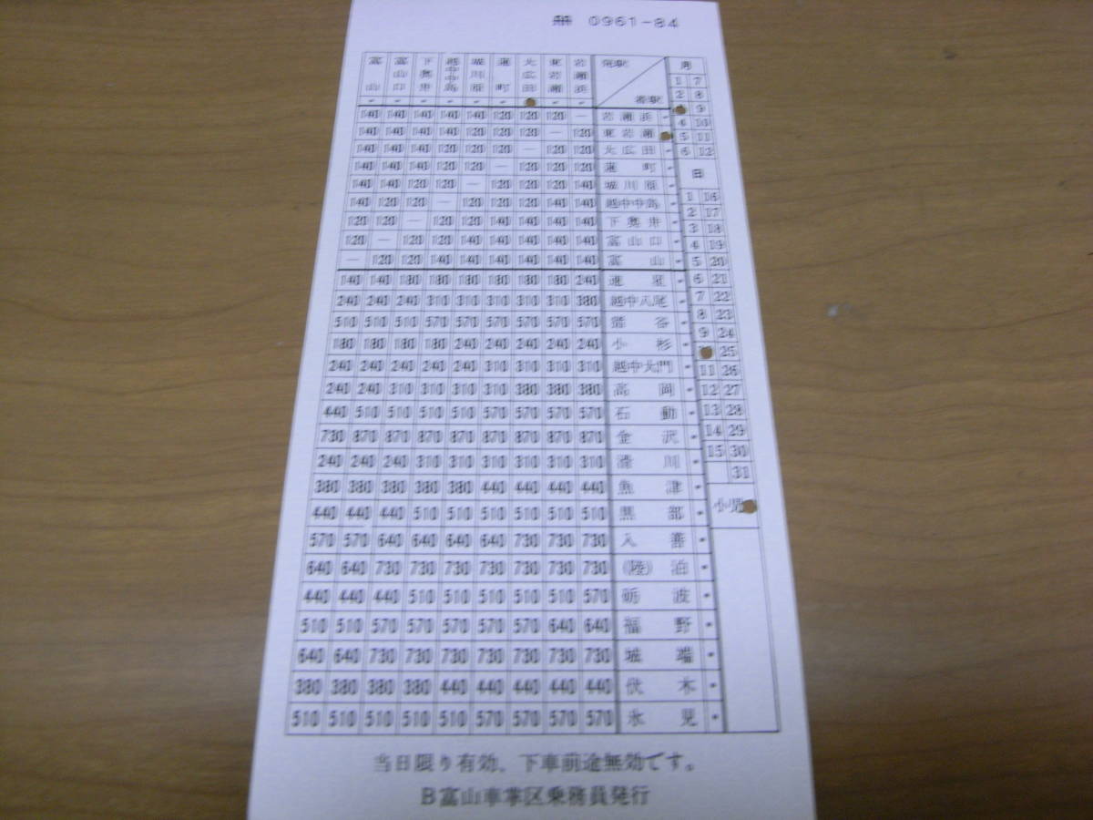 - 車内補充券 富山車掌区乗務員発行 0961-84 ●富山港線発用